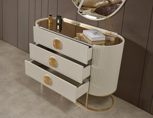 MDF material is used on the front faces of the set. Glass surfaces are tempered.