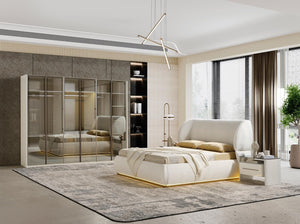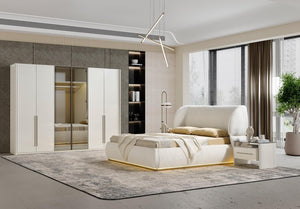 | Wardrobe Feature | The wardrobe has 6 doors. The interior of the wardrobe is designed to provide ease of use and offers various alternatives with its drawers, trouser hangers, other hanging and shelf sections. It offers a stylish appearance with the reflective glass application. |