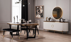 | Team Content | It consists of 1 console and mirror, 1 dining table, 4 chairs and 1 bench. TV unit and center table are offered for sale as options. |