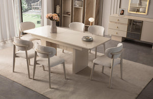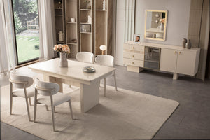 | Team Content | Tetra Dining Room consists of 1 table, 6 chairs, 1 console and mirror. Produced with İnegöl Furniture Quality. |