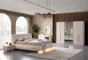| Ürün/Takım İçeriği | 1 adet karyola, 1 adet gardırop, 2 adet komodin, şifonyer ve şifonyer aynasından oluşmaktadır. |