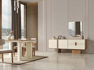 | Takım İçeriği | Capella Yemek Odası, 1 adet masa, 6 adet sandalye, 1 adet konsol ve aynasından oluşmaktadır. İnegöl Mobilya Kalitesiyle Üretilmiştir. |