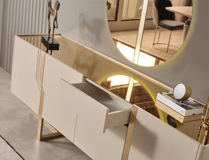| Konsol Malzemesi | Komple mdf ürün, Lake boyalı alan vizyon bej rengi, Ayak: Metal |