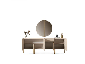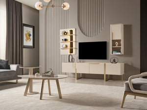 | TV Ünitesi Malzemesi | Komple mdf ürün, Lake boyalı alan vizyon bej rengi, Ayak: Metal |