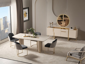 | Masa Fonksiyonu | Masa açılma özelliği bulunmamaktadır. Komple mdf ürün, Lake boyalı alan vizyon bej rengi, Ayak: Metal |