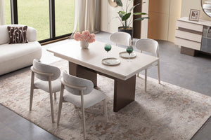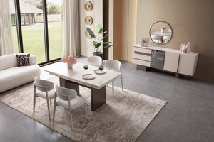 | Takım İçeriği | Lora Yemek Odası Takımı , 1 adet masa, 6 adet sandalye, 1 adet konsol ve aynasından oluşmaktadır. İnegöl Mobilya Kalitesiyle Üretilmiştir. |