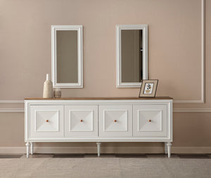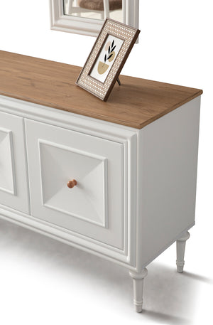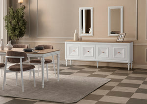 | Takım İçeriği | New Country Yemek Odası Takımı, 1 adet masa, 6 adet sandalye, 1 adet konsol ve aynasından oluşmaktadır. İnegöl Mobilya Kalitesiyle Üretilmiştir. |