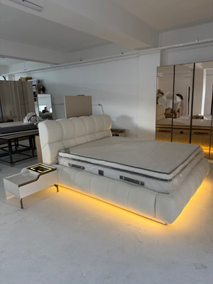 “Baza ve baza başlığı, modern yatak odalarının vazgeçilmez parçalarındandır. Şık tasarımları ve estetik detaylarıyla hem fonksiyonel hem de dekoratif bir seçenek sunar. Baza altındaki şerit LED ışıklar, odanıza soft bir aydınlatma katarken aynı zamanda odak noktası oluşturur. LED ışıklar, gece yatmadan önce sakinleştirici bir atmosfer yaratır ve baza altındaki alanı daha zarif hale getirir.”