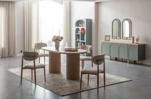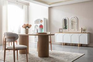 | Takım İçeriği | Siena Yemek Odası, 1 adet masa, 6 adet sandalye, 1 adet konsol ve aynasından oluşmaktadır. İnegöl Mobilya Kalitesiyle Üretilmiştir. |